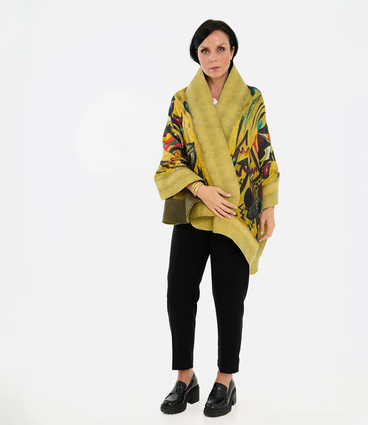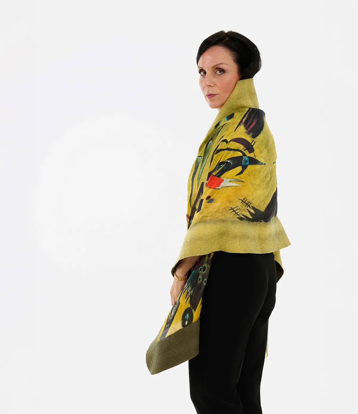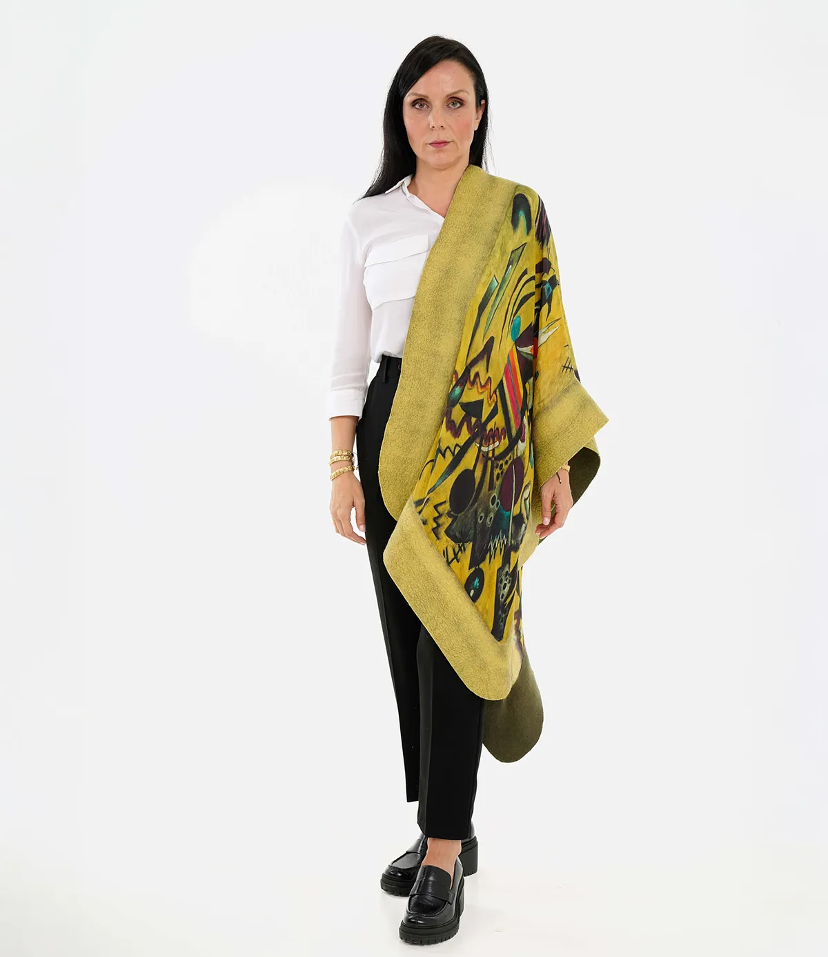 Σάλι, Διπλής Όψης, Λαδί / Μουσταρδί Τσόχα, Σχέδιο Μουσταρδί Kandinsky Μετάξι